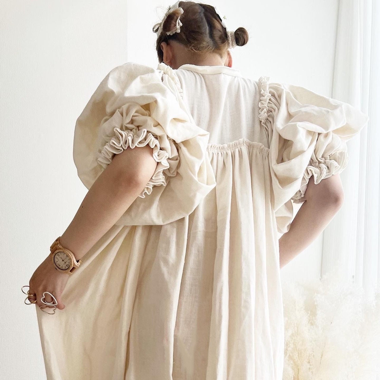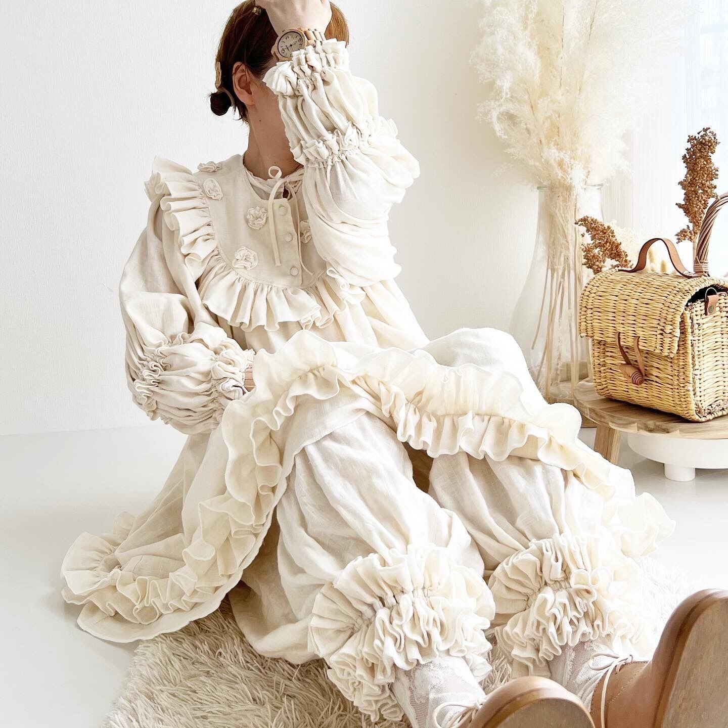 沢山のギャザーとフリルをあしらい